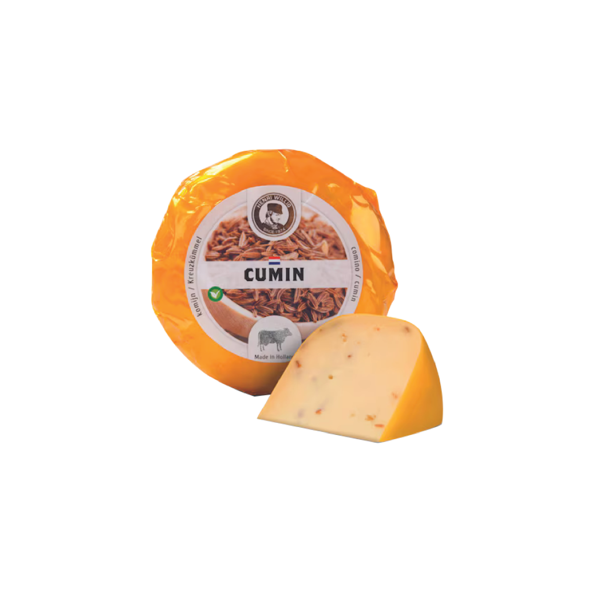 Gouda cheese with cumin seeds belongs to the typical Dutch breakfast. No cereal for us, we prefer a sandwich with this delicious cheese. Kids love it and you will love it as well. When the sun goes down, this cheese goes well with some mustard and a glass of red wine.