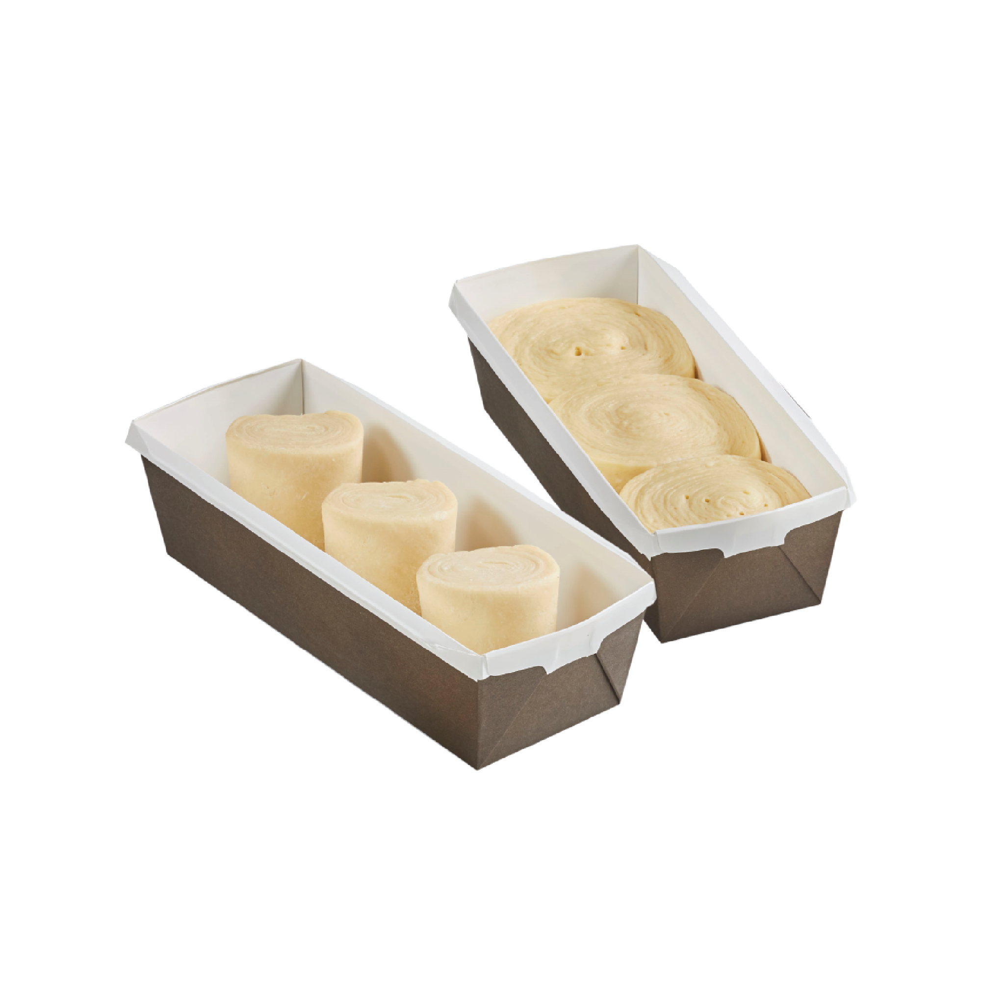 Puff pastry brioche with an exceptional visual, a pure butter recipe and a texture that is both crispy and soft. For 1 brioche, place 3 ready-to-prove rolls in 1 mould. With the 72 rolls available in the box, you can therefore prepare 24 puff pastry brioches.