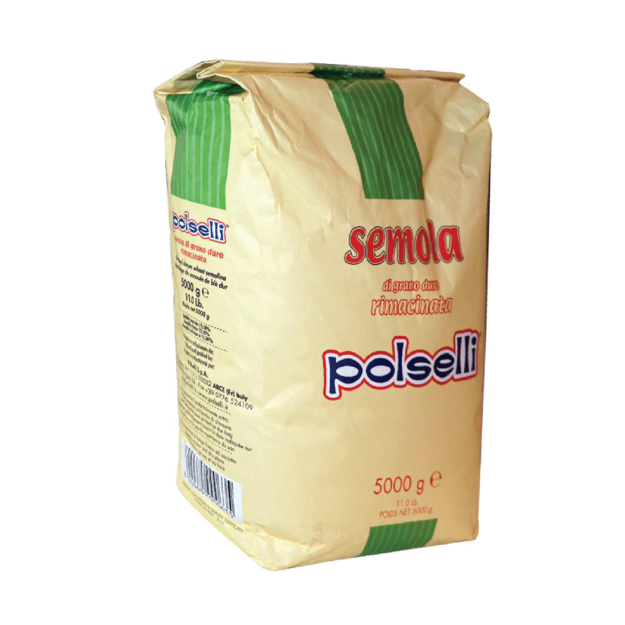 Semolina Rimancinata, Polselli Brand Flour, Imported from Italy, 5 kg bag. Made from durum wheat double milled, very fine. Delicately made from the skillful mixing of the best durum wheat varieties. This product has the presence of quality gluten, which allows an excellent bread making and a high nutritional value
