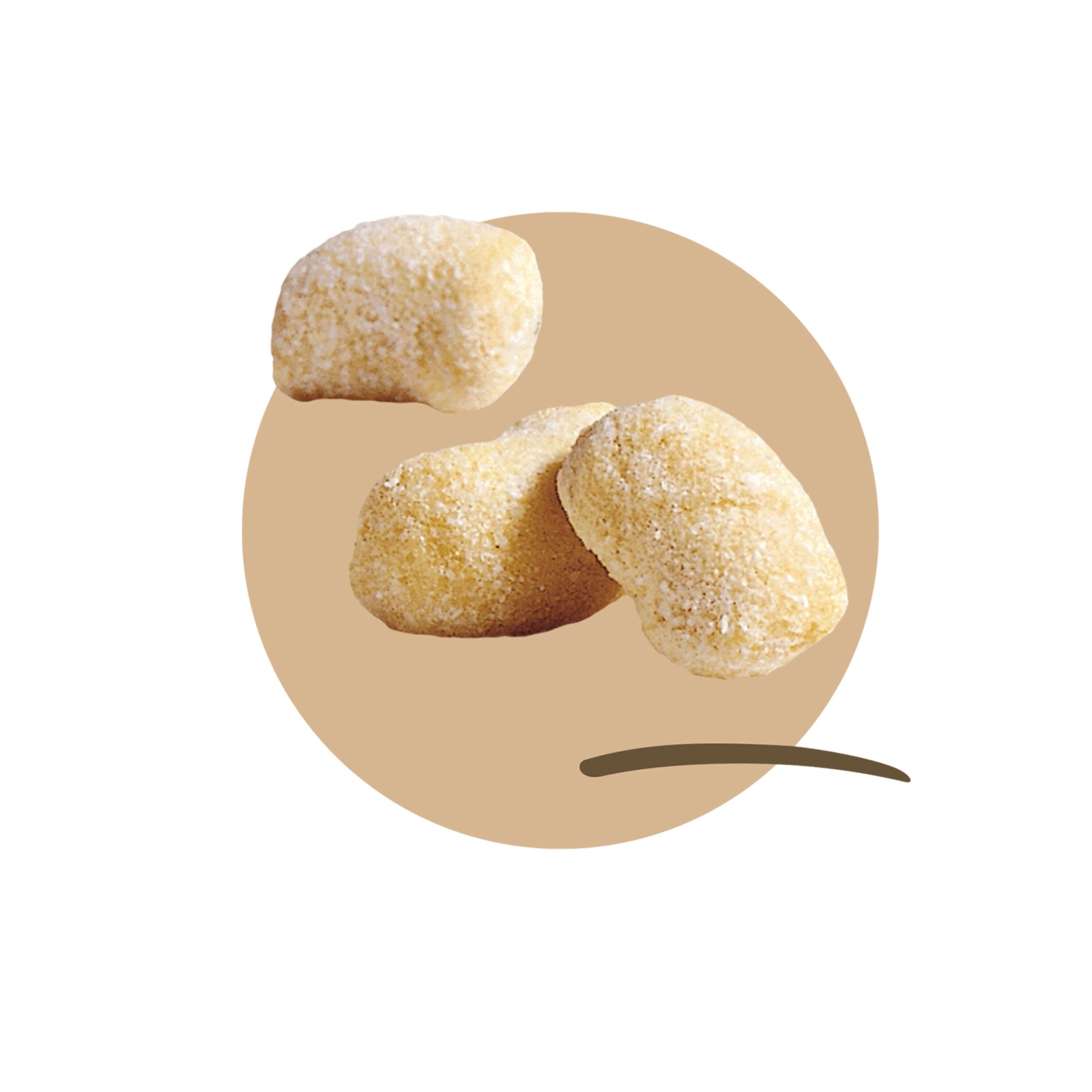 Potato puree 91%, soft wheat flour, barn eggs, salt, rice flour.