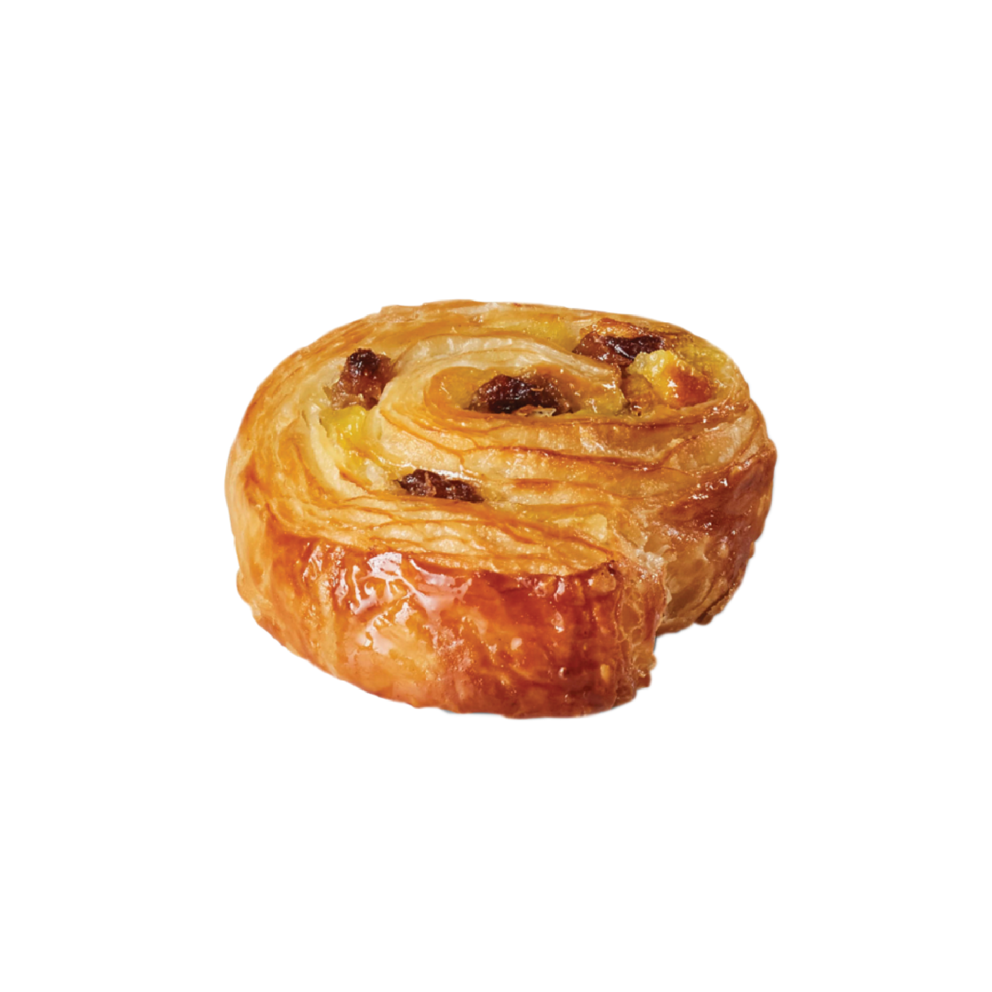 An indulgent mini pain aux raisins made from good quality margarine from plant fats and rigorously selected ingredients.