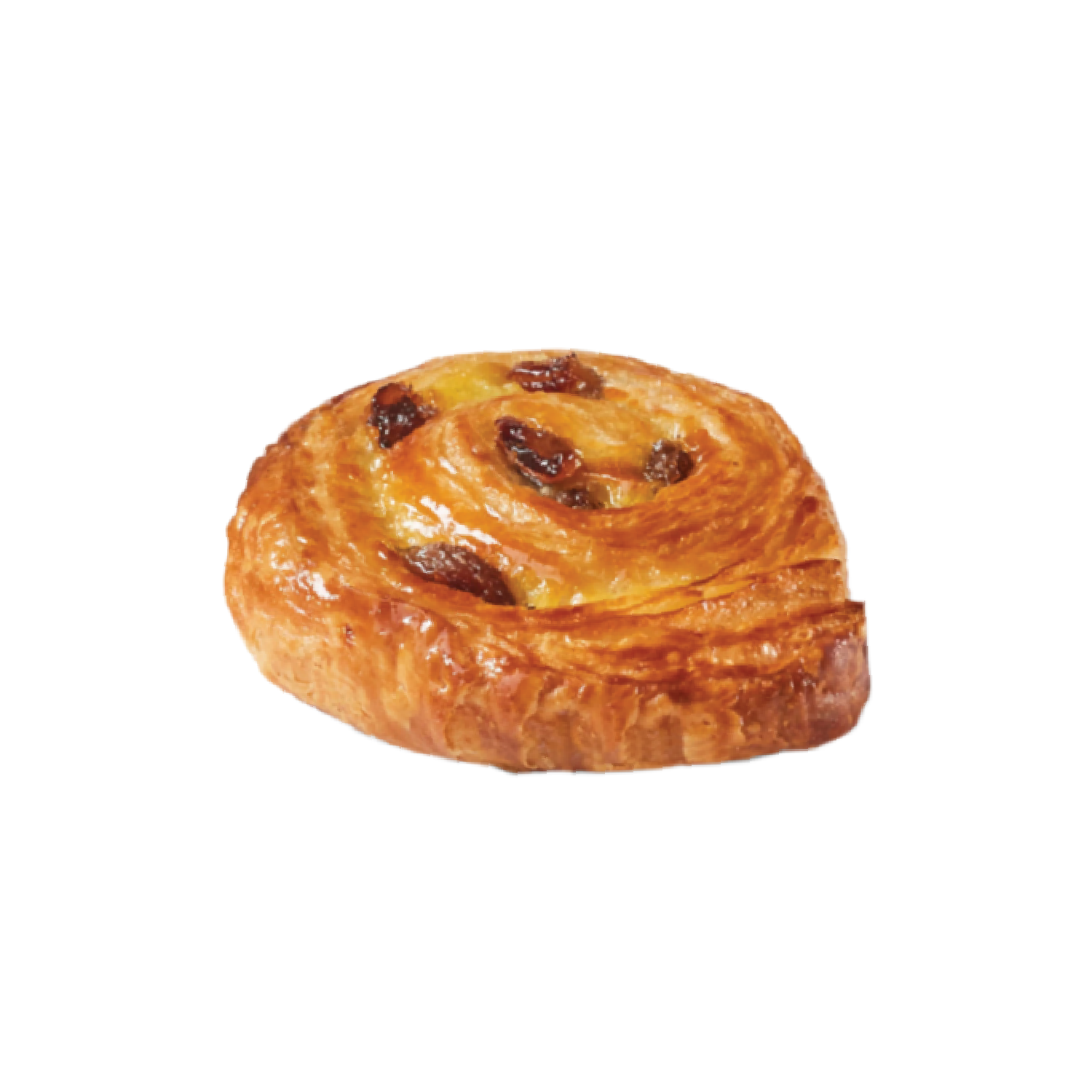 A mini pain aux raisins with regular pure butter puff pastry and a melt-in-the-mouth texture.