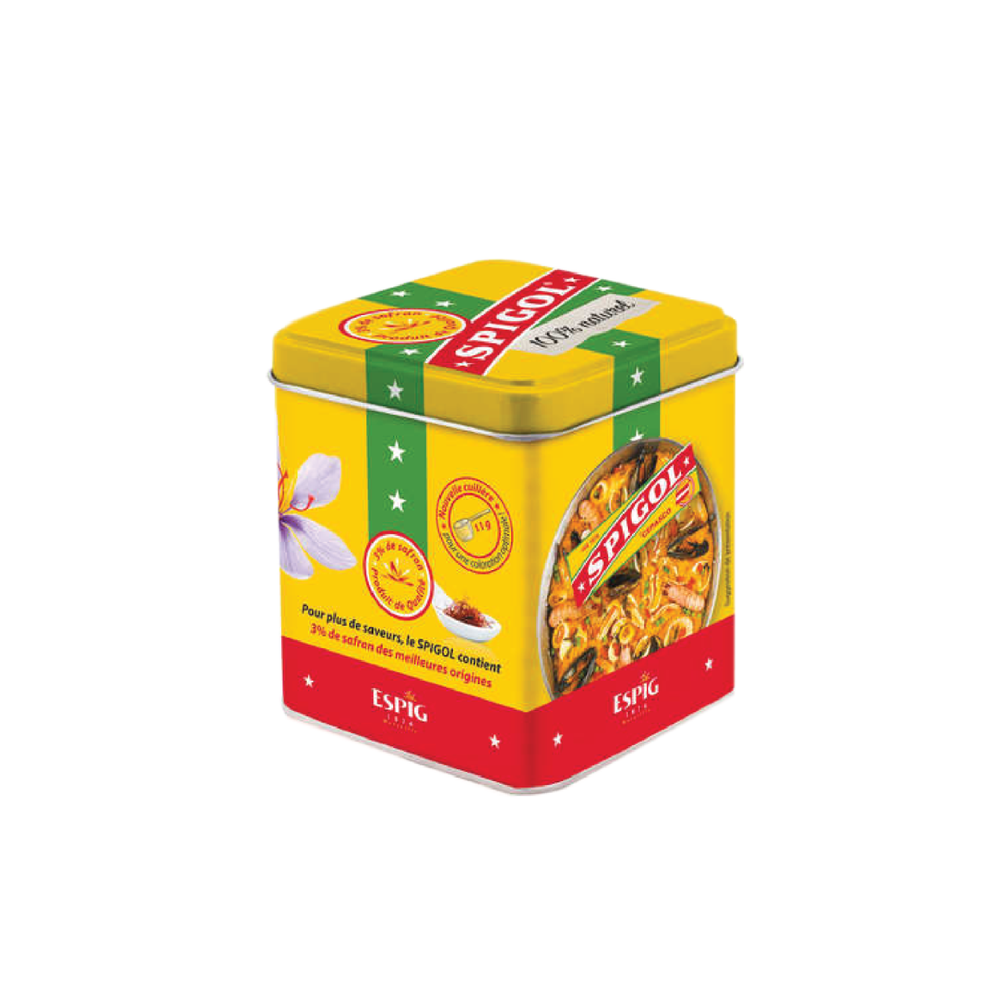 The name SPIGOL comes from a contraction of ‘ESPIG’ (the name of it’s creator) and ‘gold’ a reference to the quality of saffron within. SPIGOL is a natural raw blend and contains no added colours or preservatives
