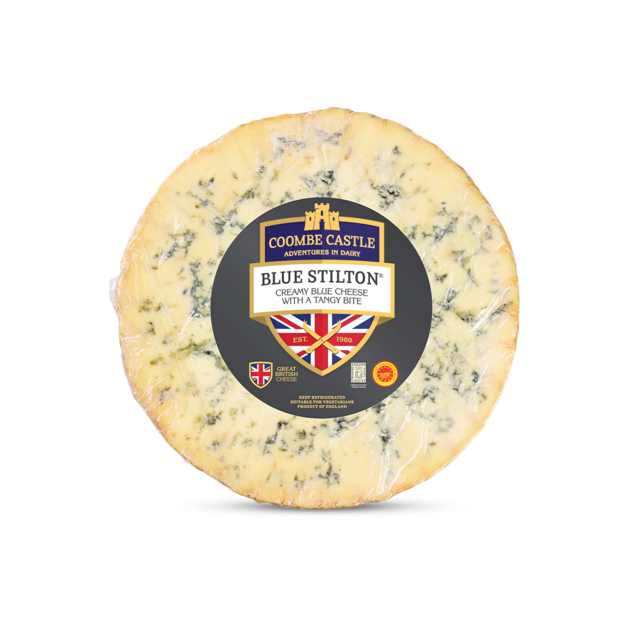 This young Stilton is usually eaten at around 10 weeks old. Its unique appearance, with magical blue veins radiating from the centre, is matched by its rich tangy flavour and smooth texture‚ certainly earning its title as the King of Cheese!